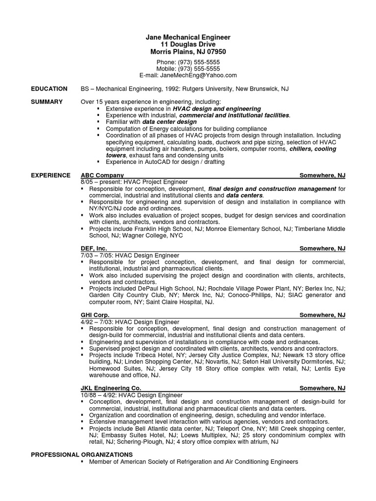 Get Sample Resume Of A Mechanical Engineer